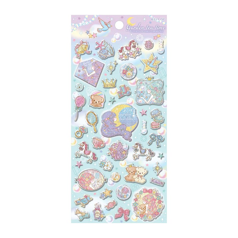 Resin stickers sheet with glittery details and cute motifs of Garden Tea Time collection.