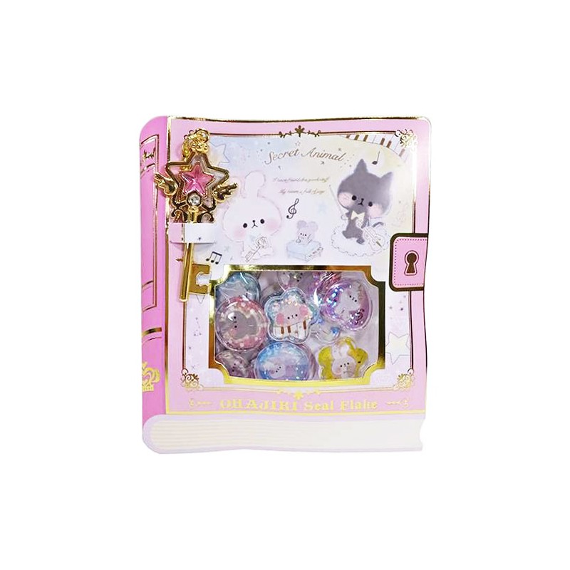 Set de apliques super fofos com ilustrações holográficas de adoráveis animais. Inclui ainda um pendente dourado em forma de chave perfeito para pendurar em telemóveis, argolas para porta-chaves, malas ou bolsas.
